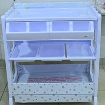 - It has different storage compartments for assorted baby bathing items like soap/shower gel, wash cloth, powder and oil, changing clothes, diapers, towel and any other item of your preference.